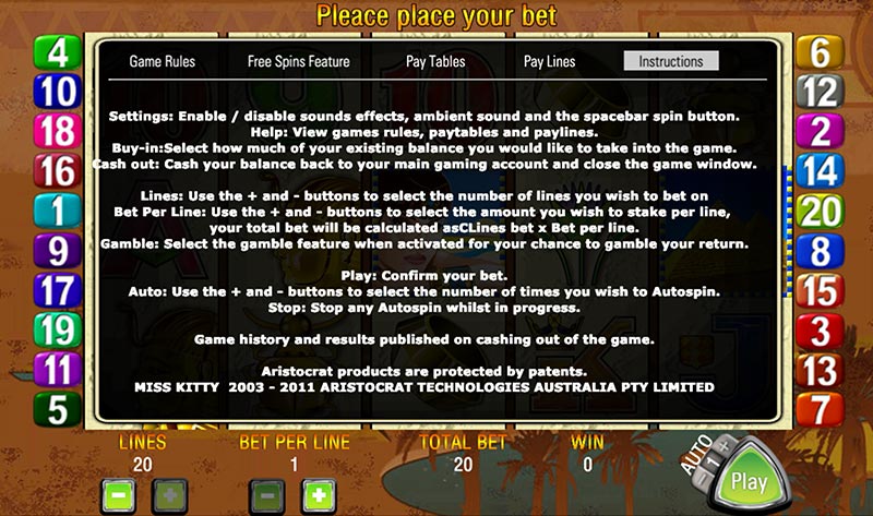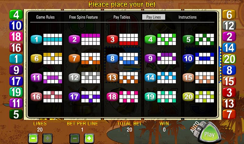 Pay Table & Screen Shots