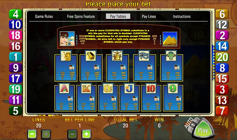 Released by Aristocrat, the same game provider behind Zorro, Big Red, and Where’s the Gold, this game is a proper old school meets modern pokie machine. It’s simple to pick up and hard to put down. Queen of the Nile doesn’t mess about with complicated menus or game plays. There is nothing tricky to have to explain, Select how many lines, how many credits and start spinning.